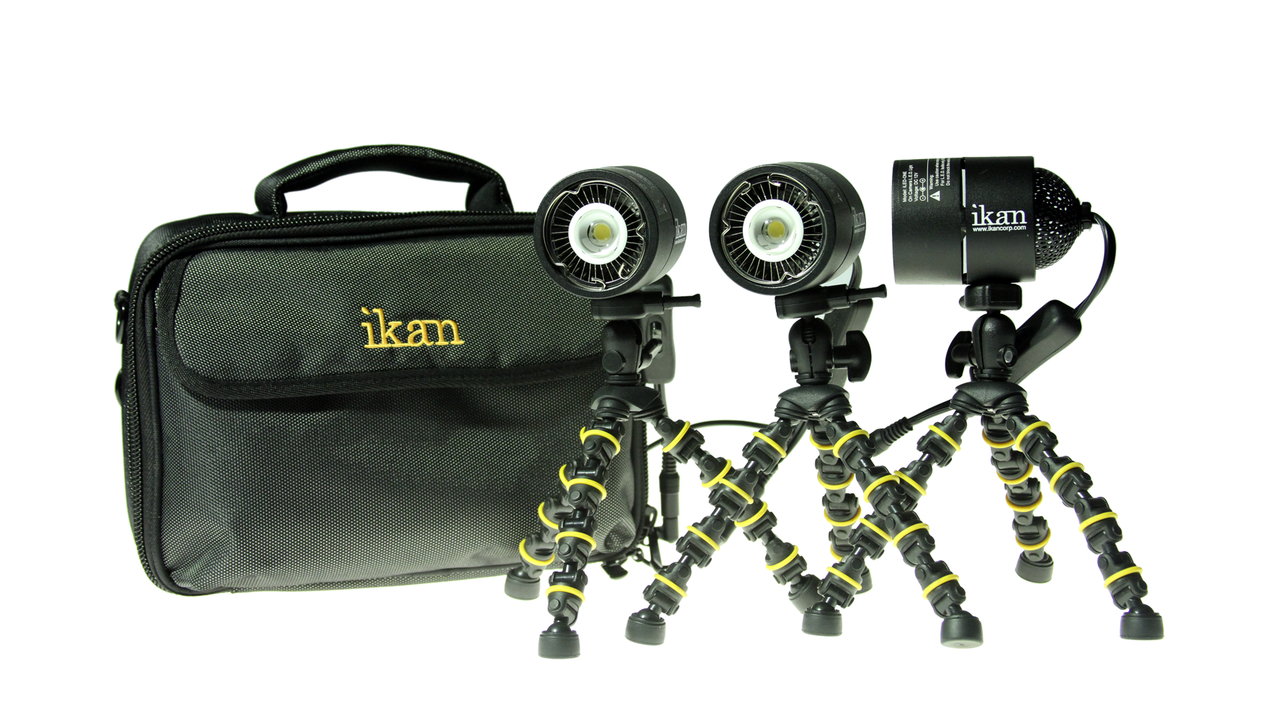 Just when you thought the iLED ONE was as good as interchangeable LED lighting could get, ikan gives you the iLED ONE- Table Kit. This three point LED lighting system includes everything you need for table top video or photography in a compact package, small enough to fit into the side pockets of any standard camera bag. Each iLED ONE LED light is interchangeable with 40 degree or 60 degree, daylight or tungsten LED bulbs and includes its own bendable tripod capable of attaching to nearly any surface. Also including all necessary A/C power supplies, the iLED ONE-Table Kit is an affordable LED table top solution that will supplement any full size lighting kit.