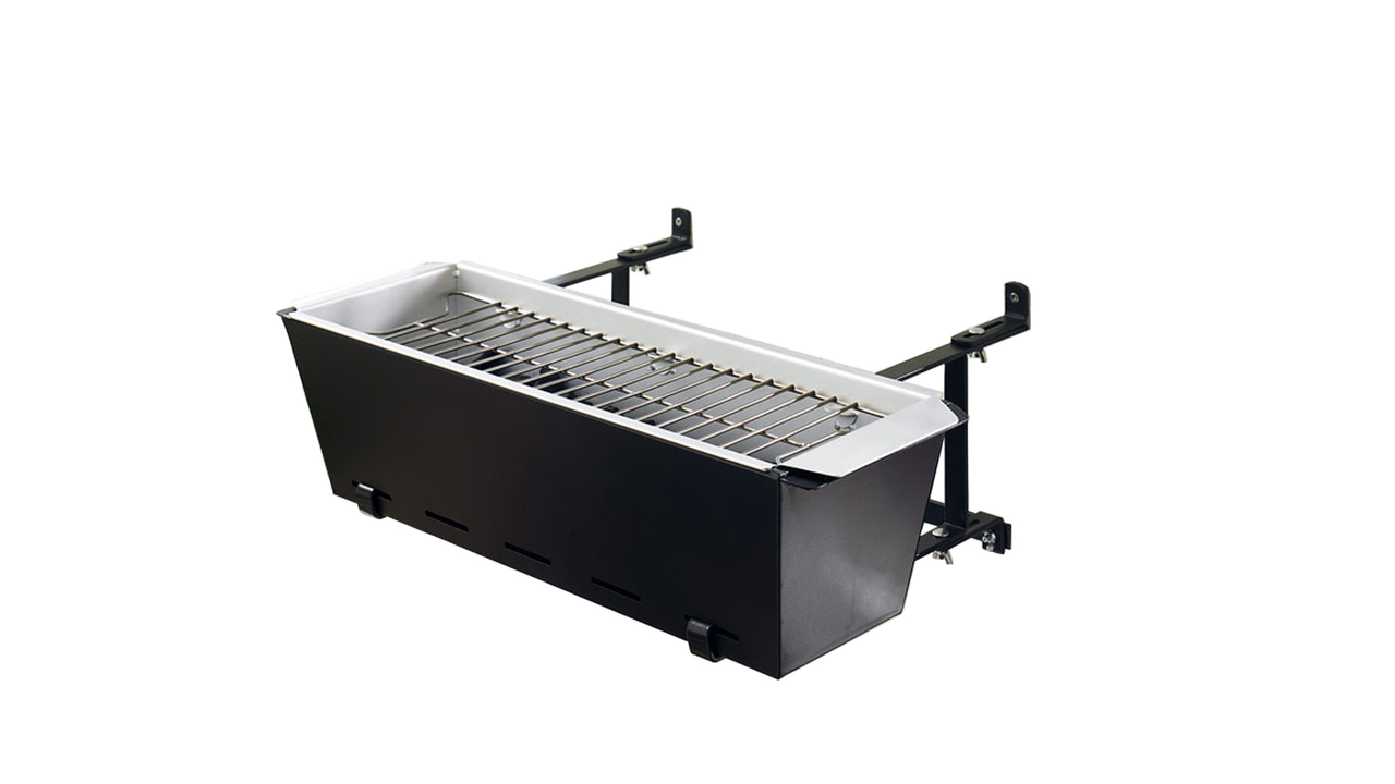 The Bruce Handrail Grill by designer Henrick Drecker combines the function of a handy grill with the principle of a flower pot: It hangs on the handrail in common flower-pot supports and does moreover not need much space. The grill can be hanged on the handrail or at the wall, which also makes its use in gardens or on huge terraces possible.