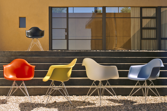 The nine new vintage colors of the Eames Molded Fiberglass Arm and Side Chair can be combined with the choice of wire, dowel leg, four leg, stacking or rocking bases. These new fiberglass options will be available for consumer and commercial order in the summer of 2013.
