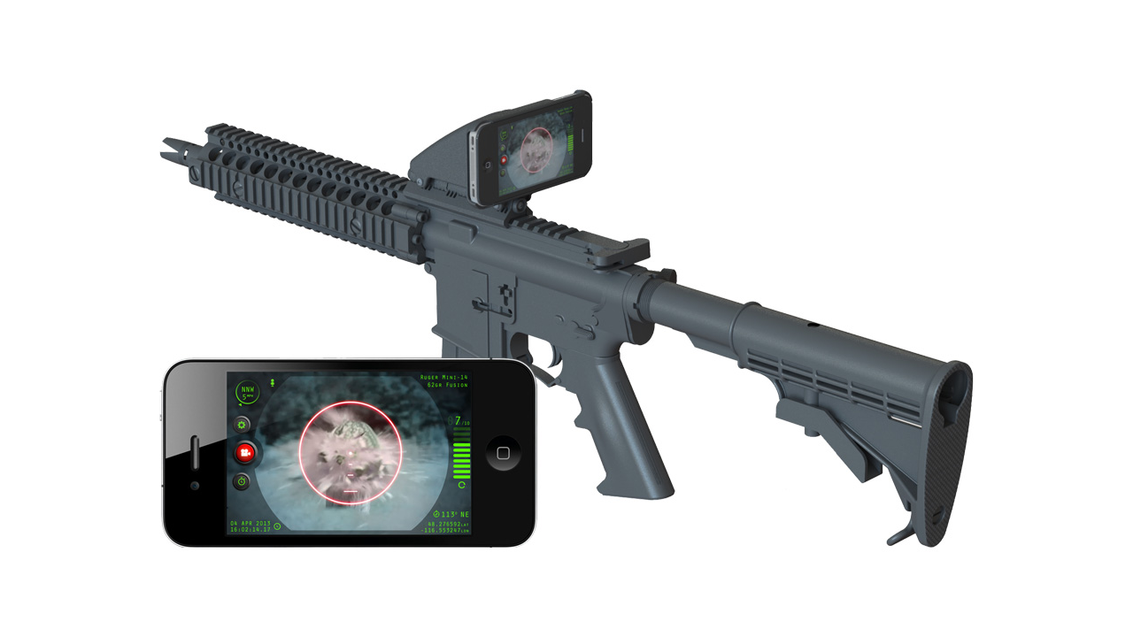 The Inteliscope is a combination of a tactical rail mount for an iPhone or iPod and an app that brings critical ballistics and environmental insight to the shooter in real time. The Inteliscope mount system attaches your Apple device securely to any firearm with a Picatinny (Mil-STD-1913) or Weaver tactical rail and sports a number of features: