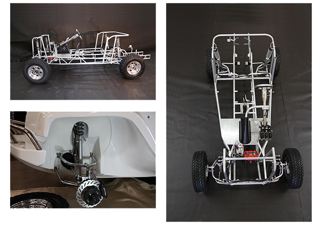 The light weight chromoyl chassis is engineered to integrate into the composite hull using cutting edge epoxy adhesion technology creating the revolutionary amphibious hull/body. This combined with the extremely durable long travel off road suspension makes this package unequal in the strength and performance.