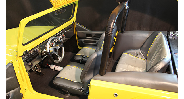 The interior is basically the same size as a CJ8 and yes it is a four seater. The majority of jeep after market interior parts will interchange with Panther. This was a strong motivator for choosing the CJ8 as their foundation, there is an unlimited amount of cool aftermarket products to customize the Panther.