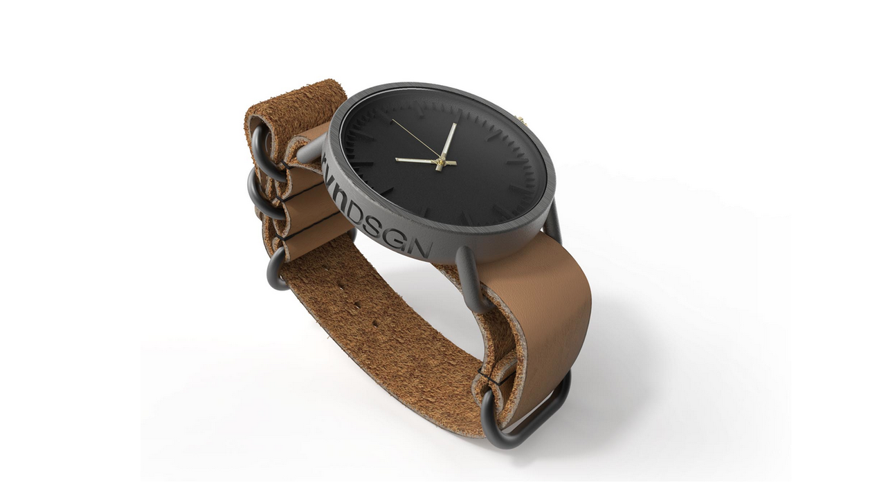 rvnDSGN is a boutique watch brand established in 2011 as the vision of award winning industrial designer zach raven. rvnDSGN timepieces are the first of their kind, completely built using the latest in 3D additive manufacturing technology. Designed in solid titanium, one of the newest and most precise methods of 3D printing, the beauty of the manufacturing process shows the story of its creation through subtle grain on the case, allowing each watch to be unique. Each rvnDSGN timepieces is completely handmade in the United States per order; this takes a little longer, however the customer is buying a watch made specifically for them. rvnDSGN uses only the highest quality materials including; Swiss ETA 7-jewel movements, laser-sintered titanium, and handmade leather nubuck straps.