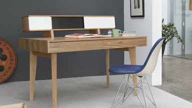 Open the sliding doors on this modern writing desk and experience immersive sound that brings high quality audio into the workspace. The Audio Desk f...