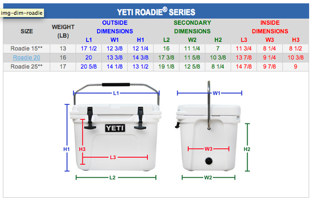 YETI Roadie Coolers have the same hard-wearing features and insulating qualities as their top-of-the-line Tundra coolers, with a strong stainless steel handle made for tossing it around. The YETI Roadie is the ideal personal cooler. Big enough to hold the goods, small enough to stay out of the way. There’s no better lunch box cooler choice to keep your food and drinks cold. The YETI Roadie is also the perfect size for your canoe, kayak, paddle board, ATV, UTV, or golf cart. Holds 14 cans (12 oz).