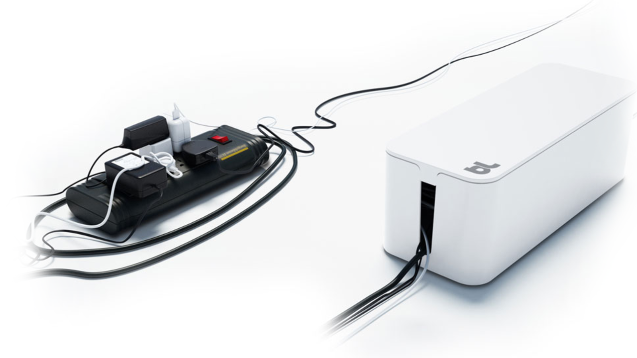 Because of the dimensions you can put every connector strip, machines, a DSL-Router or a transformer into the box. If you close the box, you won't have any more cable tangle.
