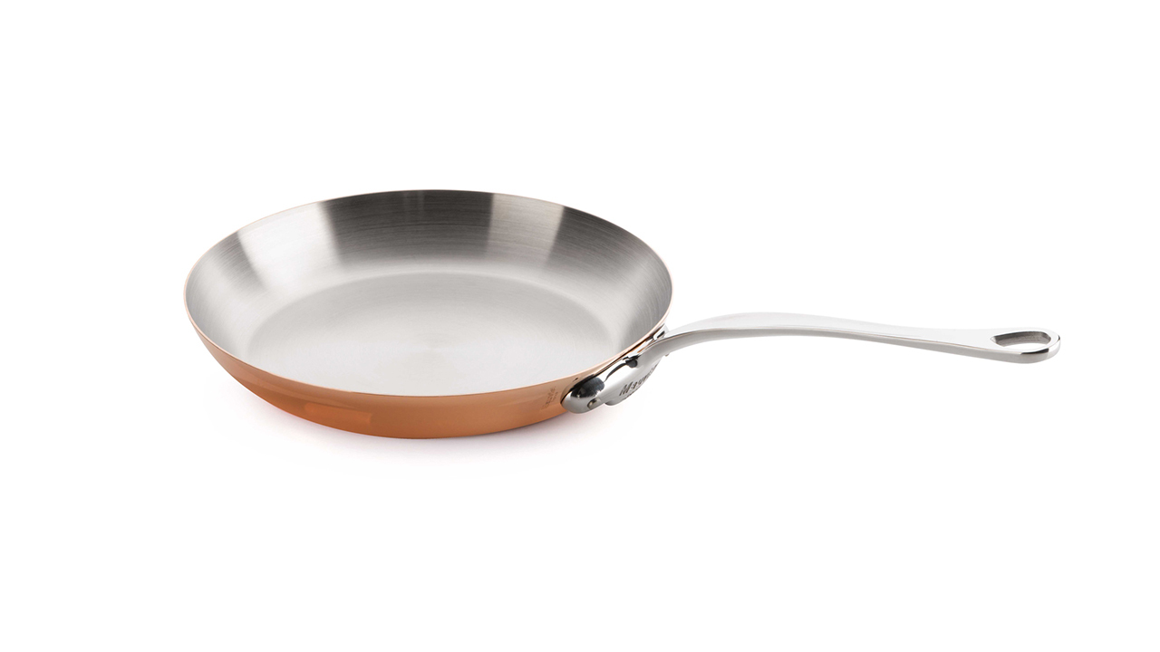 The M'Heritage Copper & Stainless Steel frying pan is available in 8.6, 10.2, and 11.8-inch sizes.