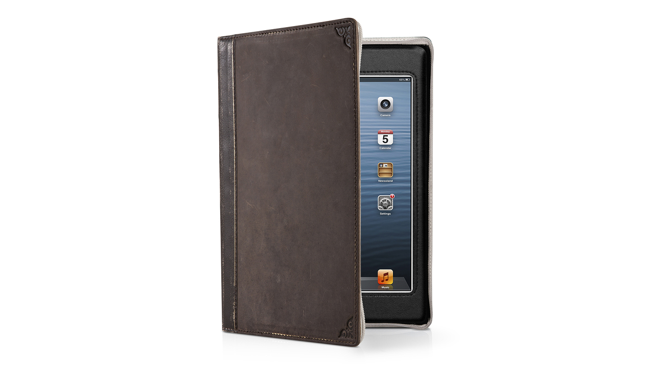 The featherweight BookBook for iPad mini weighs just 7.5 ounces, and is carefully crafted with genuine, hand-distressed leather so no two are exactly alike. Outside you’ll see the tiny BookBook has hardback book covers and a rigid spine to provide impact and crush protection for iPad mini. Open BookBook for iPad mini with its dual zippers to reveal a soft, sueded, luxury lining that protects the screen.