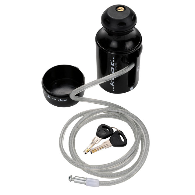 The Bottle Lock includes a 5’ internally coiled 8mm cable that locks back into itself, as well as a compartment underneath for storage of keys or cash. It’s perfect when you want to stop and re-fuel on a long weekend ride or a take quick spin to your neighborhood coffee shop.