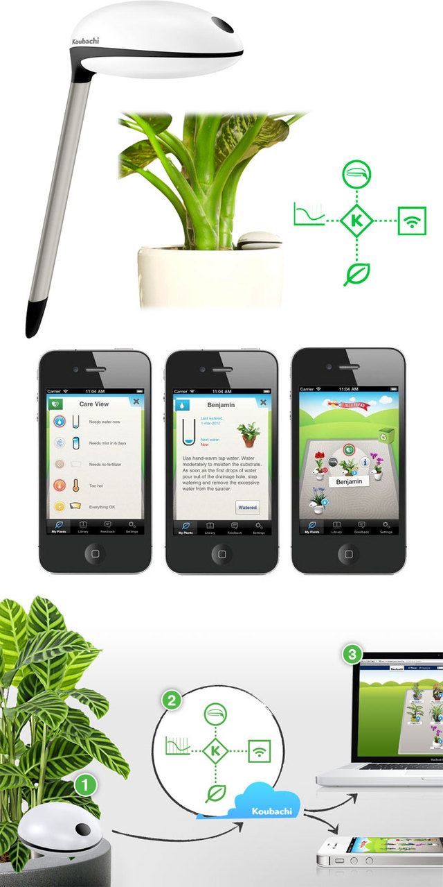 Koubachi has built on the success of its popular interactive plant care assistant available as an iPhone App and Web App. Last year Koubachi launched a complementary Wi-Fi Plant Sensor that seamlessly integrates into the Koubachi system. The sensor literally gives your plant a voice.