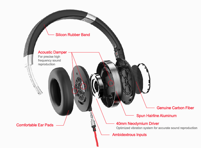 Phiaton Headphones, known for their eye catching design, high-quality materials, and authentic sound reproduction has set a new precedent with the latest addition to the M-Series. Exquisite genuine carbon fiber, intricate detail with titanium anodized aluminum and red accents, and richly-padded earcups are fused together with newly developed 40mm drivers to create powerful, sonic-sounding headphones unlike any other. Every detail in the Fusion MS 430 Headphones was skillfully combined from the perforated headband design to the hidden red accents behind the carbon fiber enclosure. The Phiaton driver technology completes the synthesis, providing rich bass, full-bodied midrange, and sparkling high notes. This mechanical beauty was constructed by fusing together brilliant materials along with the sound technology to deliver a powerful, aesthetically resilient headphone. Become fused with your music with the Fusion MS 430.