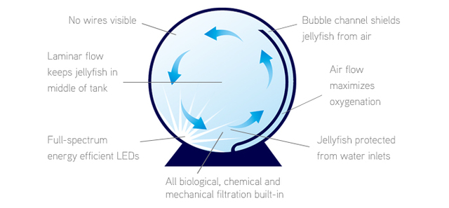 Jellyfish are becoming the next trend in ornamental aquariums and Jellyfish Art is one of the leaders in supplying live jellyfish and their specialized aquariums and products. The Desktop Jellyfish Tank is the first affordable tank designed from the bottom up specifically for jellyfish, and it’s as easy to maintain as a regular fish tank. Their mesmerizing forms and soothing movement create living works of art. Jellyfish aquariums are a new kind of interior decoration, sources of light and life that become the focal point of any space.