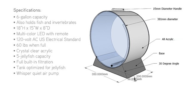 Jellyfish cannot go in a regular fish tank because they will get stuck in corners and sucked into filtration intakes. Jellyfish Art's signature Desktop Jellyfish Tank has the right water flow pattern designed to keep jellyfish healthy and properly displayed. They also make a frozen food high in fatty acids made specifically for jellyfish. Jellyfish Art keeps jellyfish in stock at all times so customers have a reliable supply.