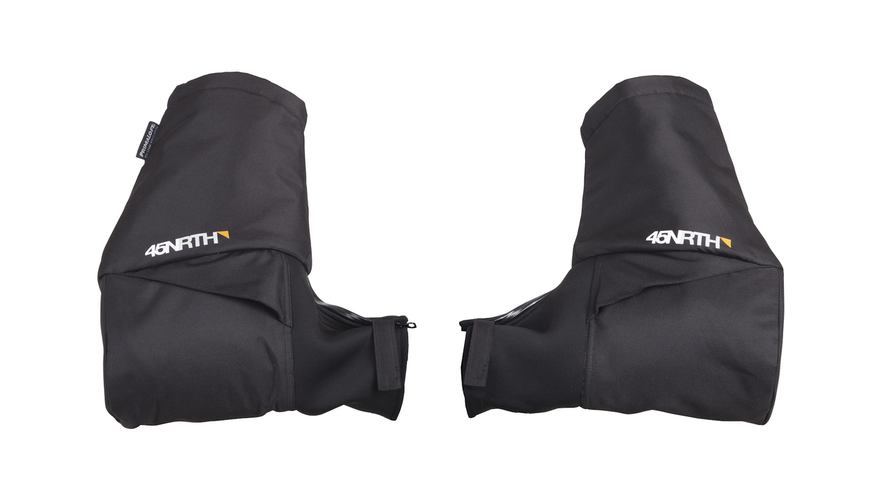 A technical handlebar attachment system includes a foam donut that seals the handlebar and cable closure, while also keeping each pogie in an upright position. Water resistant zipper vents on top and bottom provide temperature regulation when it gets too warm, and two inner pockets make stowing extra food and gear simple and accessible.