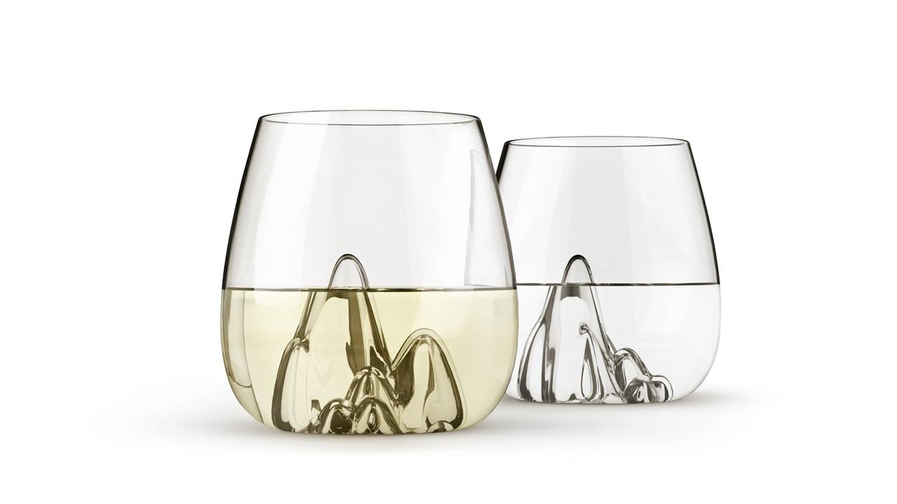 Escape into the stunning landscapes that wrap themselves around a choice beverage. The stemless glassware frees itself from extra garnish, as the hand blown peeks and dips captivate us so. Might I persuade you to take a long weekend, somewhere beautiful. Where the view takes your mind off everything that usually controls it. Have a few drinks, laugh harder than you have in along time, and just escape. You deserve it. Designed in lieu of the larger original Glasscapes by Aruliden.