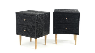 Here MJM Furniture's two drawer modern interpretation of the traditional bedroom mainstay is rendered in charred Loblolly pine; with mitered edges, th...