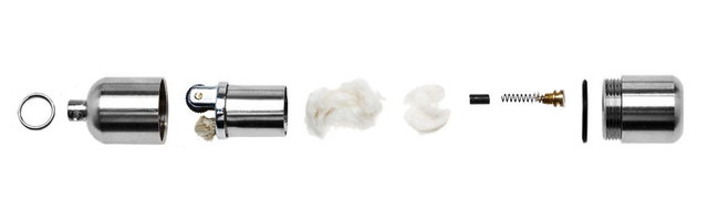 The 1-inch capsule lighter has a waterproof/airtight seal. No water can get in, and no lighter fluid can get out. It's quick to light and always at hand. Stands up on its own and stays lit until you blow it out, but we don't recommend keeping it lit for longer than 15 seconds at a time. (Unofficial testing at our office revealed that the lighter can get quite hot and the flame very large after 15 seconds.) Note that the lighter does not come filled with lighter fluid.