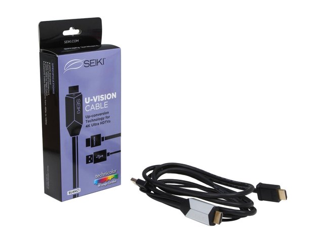 To help consumers experience the best digital entertainment content on 4K Ultra HD TVs, Seiki has introduced the U-VISION line of 4K up-conversion HDMI accessories that optimize current HD and non-HD content for 4K Ultra HD screens. Available as a standalone HDMI cable or HDMI up-conversion adapter without cables, U-VISION products integrate Marseille Networks VTV-1222 video processing chip to transform legacy content into sharp, detailed 4K video. Seiki U-VISION 4K up-conversion DGMI cable and adapter are the first accessory products to deliver the Hollywood video experience certified by the Technicolor 4K Image Certificiaton Program.