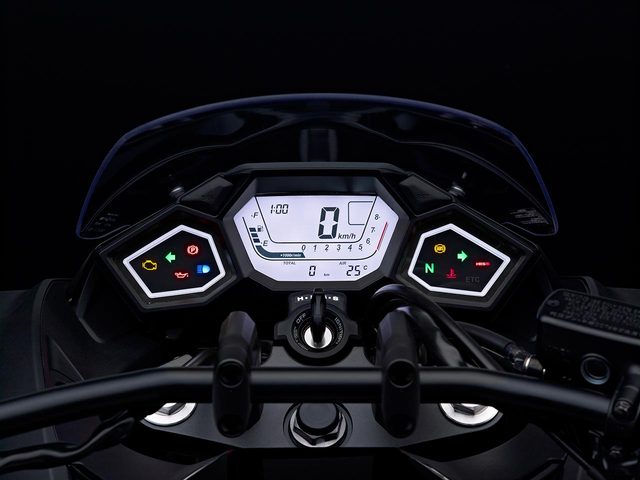 Underneath the brooding menace is a rock-solid chassis and engine package. Packed with low-friction technology, its 745cc twin-cylinder engine is canted forward, creating space and a low centre of gravity. Delivering strong low and mid-range power and torque for smooth acceleration coupled with excellent fuel economy, it’s also equipped as standard with Dual Clutch Transmission (DCT), giving the rider options between automatic twist-and-go D and S mode – plus trigger-operated computer game-style manual MT mode. Intuitive and easy to use, it adds to the futuristic appeal of the NM4 Vultus and is the perfect complement to the engine’s gutsy, usable performance.
