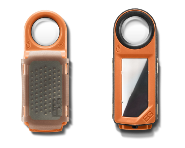 The Tinderbox’s attached magnifying glass can be used for a spark to ignite the gathered tinder if matches are wet, or worse, unavailable. An emergency signaling mirror is located on the bottom of the Tinderbox, because even getting a fire started doesn’t equate to finding an escape route. The Bear Grylls Priorities of Survival Pocket Guide is included with this tool, furthering its usefulness and potential life-saving utility.