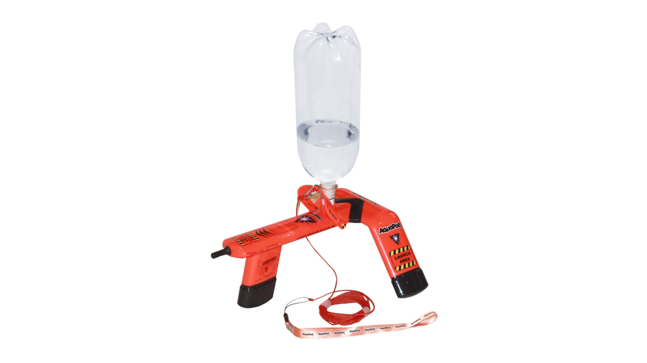 The Aquapod is a futuristic, one piece design plastic bottle launcher made of highly durable ABS plastic. It needs no assembly, just an ordinary bicycle pump, a bottle and water. The Aquapod launches ordinary plastic soda bottles up to 100 feet in the air and is the only launcher available with a built in pressure release valve for everyone's safety.