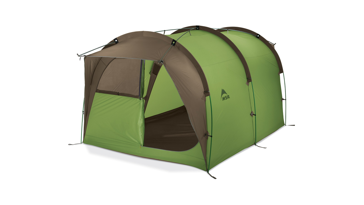 The versatile MSR Backcountry Barn shelter’s single-wall construction affords spacious protection for up to five people in a relatively small package. Its easy-pitching, hooped design offers standing head clearance from end-to-end for most, and steep sidewalls expand livable space to its maximum potential. An included, detachable floor lets you adapt the interior for anything from covering a picnic table or storing group gear, to sleeping quarters or a remote race check-point/aid station.
