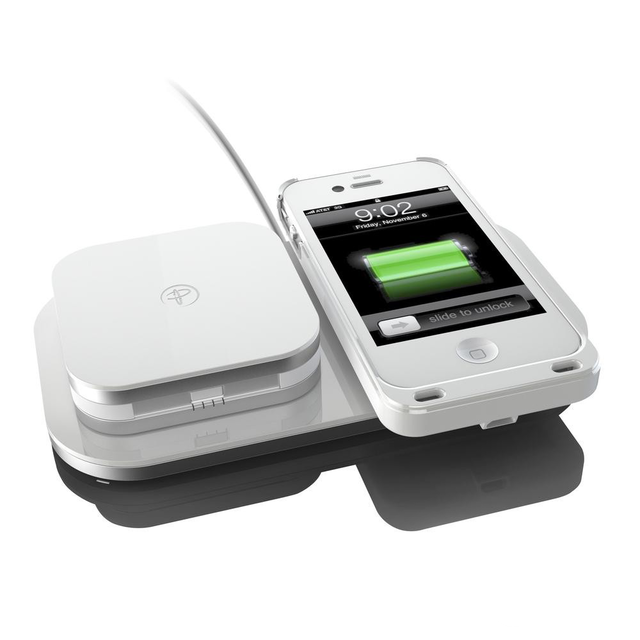 ● The 24-Hour Power System includes a Powermat for 2 Devices, Wireless Case for iPhone 4/4S, and a Portable Backup Battery