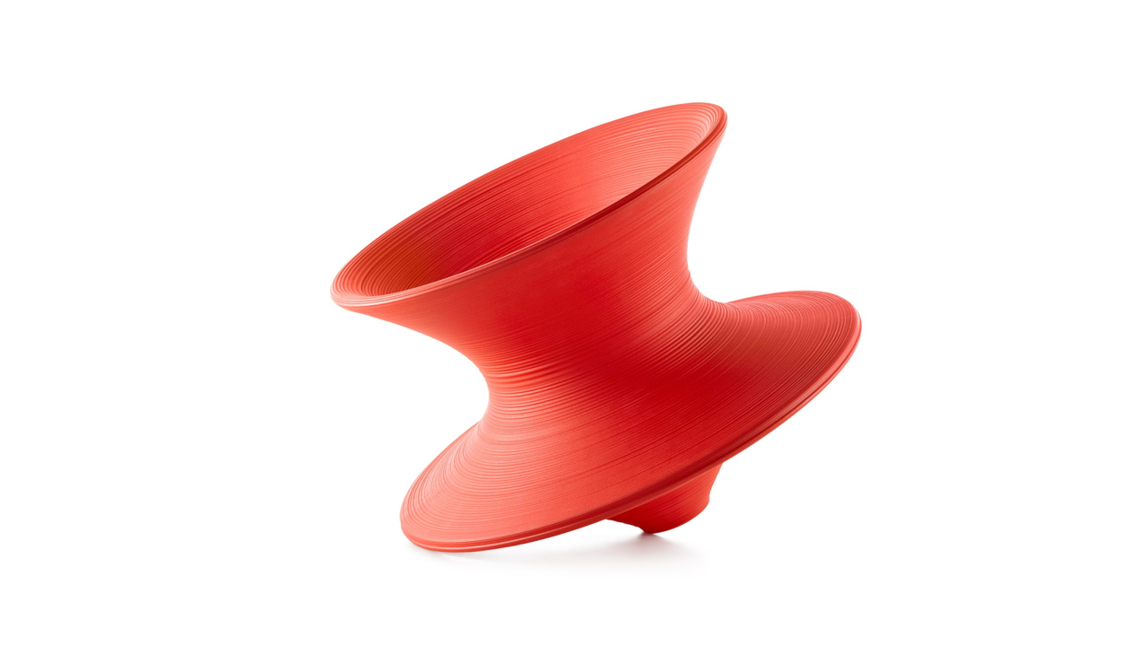 Upright, the Spun Chair has the appearance of a sculptural vessel. But when leaned on its side, it becomes a fun and functional chair that lets you rock side to side or spin around. Architect and designer Thomas Heatherwick created the Spun Chair using a rotational molding technique to shape plastic.