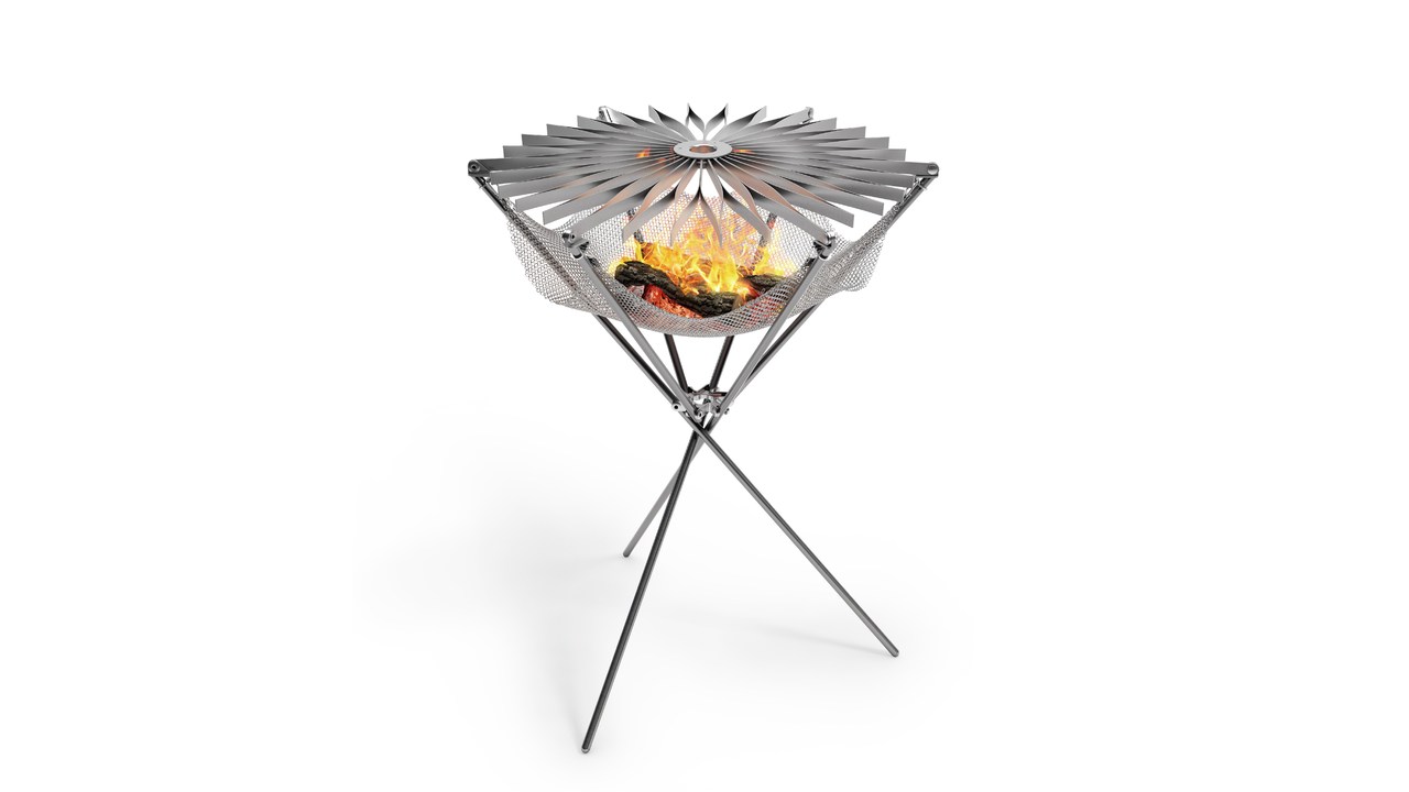 Another key feature is the unique “Fire-Hammock”, a flexible stainless-steel ring-mesh construction which is safe for any kind of solid fuel. The breathable texture allows for the fire to be ignited from underneath and can achieve a strong heat in a short amount of time. Nevertheless, the tripod structure stays cool to touch.