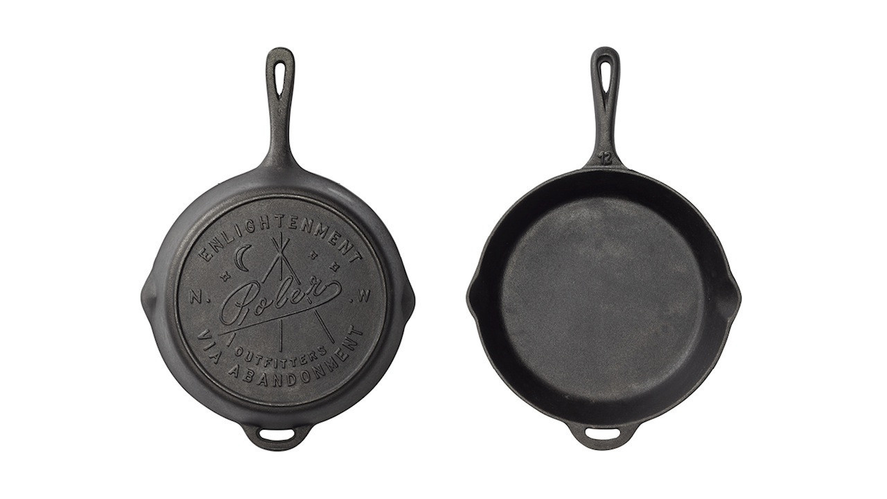 And those values are no exception when it comes to the Poler 12" Cast Iron Skillet . The skillet weighs 7lbs and comes pre-seasoned and ready to use straight out of the box. It features dual pour spouts, a comfortable handle and an additional helper handle for extra support while pouring and carrying.