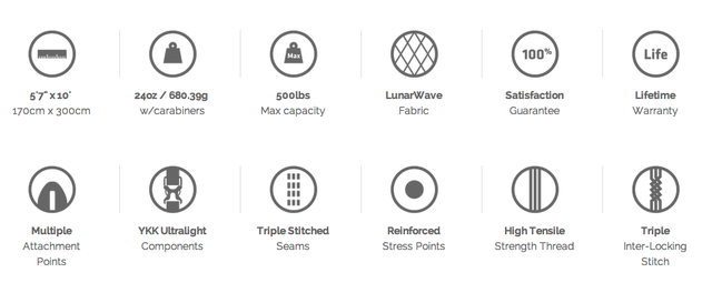 Made of Kammok’s proprietary diamond ripstop fabric, LunarWave, the Roo is incredibly lightweight, tear resistant, breathable, and roomy enough for two.