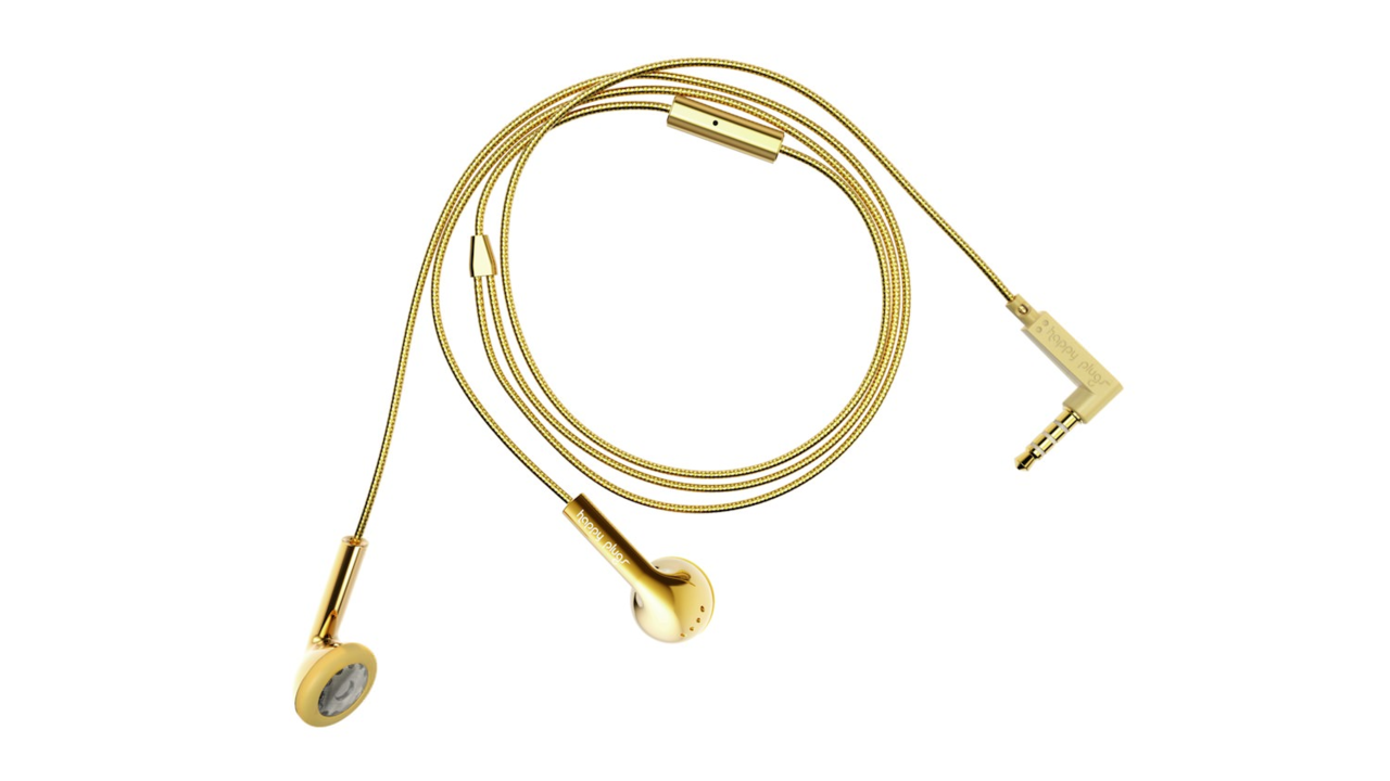 Happy Plugs Deluxe Edition is a fresh take on jewelry. Upgrade your look with the most contemporary fashion detail of them all: Stylish quality headphones in 18 carat solid gold.