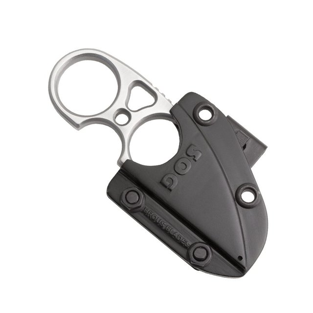 "The Brous series of knives have been designed in conjunction with Jason Brous, a 10-year CNC machinist and custom knife maker. Brous prefers to use stock removal and grinded bevels to create his "functional fantasy" knife designs. SOG is proud to be collaborating with this up and coming knife designer to produce innovative new products, like this 9CR18MoV stainless steel blade, with a molded hard nylon sheath for reversible belt carry or neck carry. This isn't the last you'll see of the Brous/SOG combo."