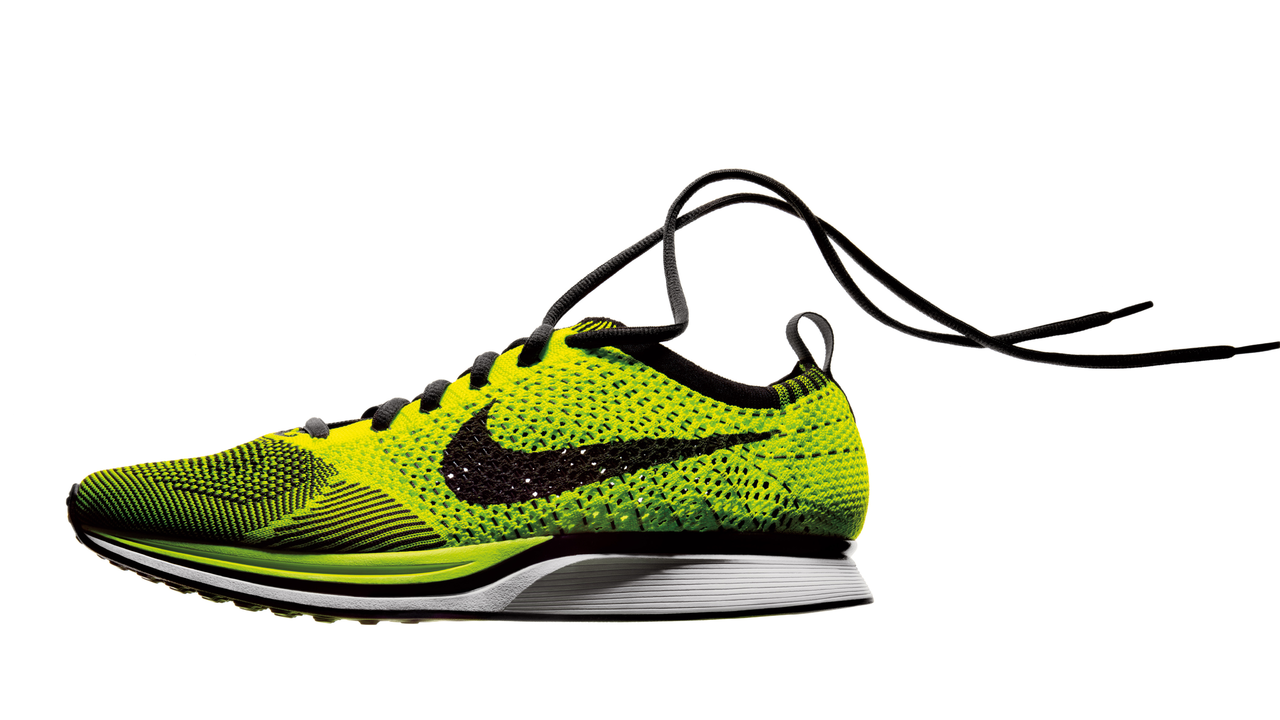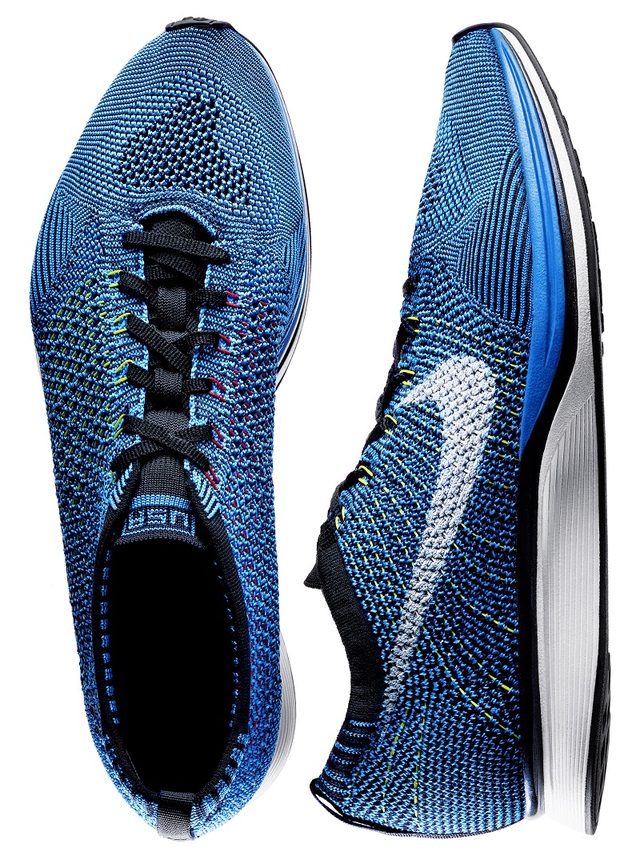 Nike has engineered knit for performance to create running footwear that features only the essentials. Employing a new technology called Nike Flyknit, yarns and fabric variations are precisely engineered only where they are needed for a featherweight, formfitting and virtually seamless upper. With all the structure and support knitted in, the Nike Flyknit Racer’s upper and tongue weigh just 34 grams (1.2 ounces). The whole shoe weighs a mere 160g (5.6 ounces) for a size 9, which is 19% lighter than the Nike Zoom Streak 3, a shoe worn by first, second and third place athletes in the men’s marathon at the 2011 World Championships.