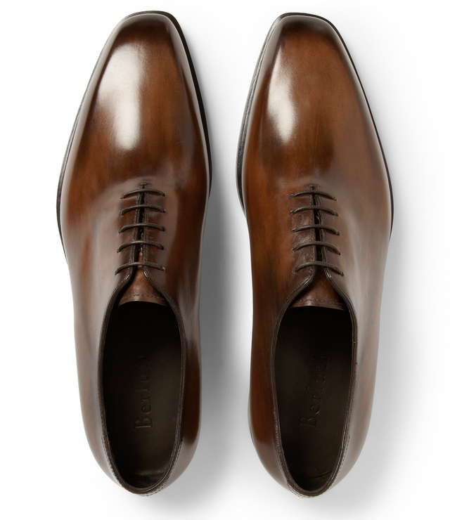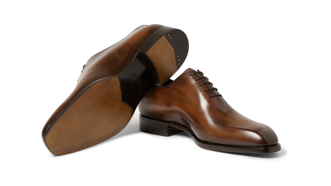 ● Burnished dark brown polished full-grain Venezia leather (calf) one-cut shoes