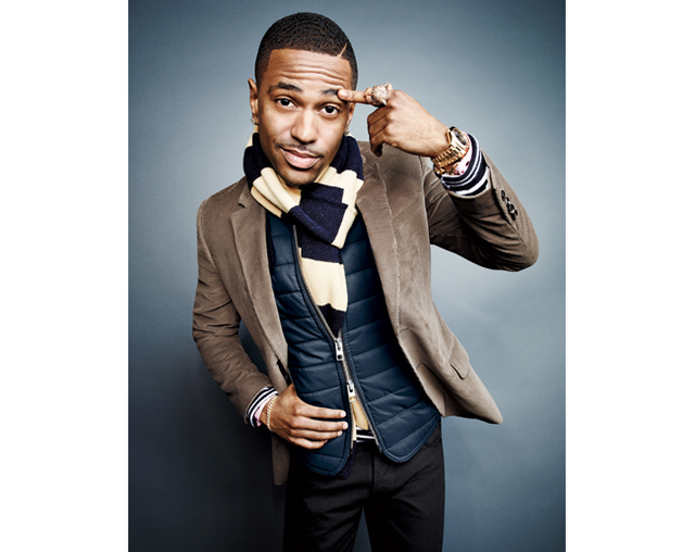 Seen below is rapper Big Sean wearing AllSaints Mode Gilet vest who was featured in November 2012 issue of GQ Magazine where he showcased different ways to bundle up for the winter without a coat.