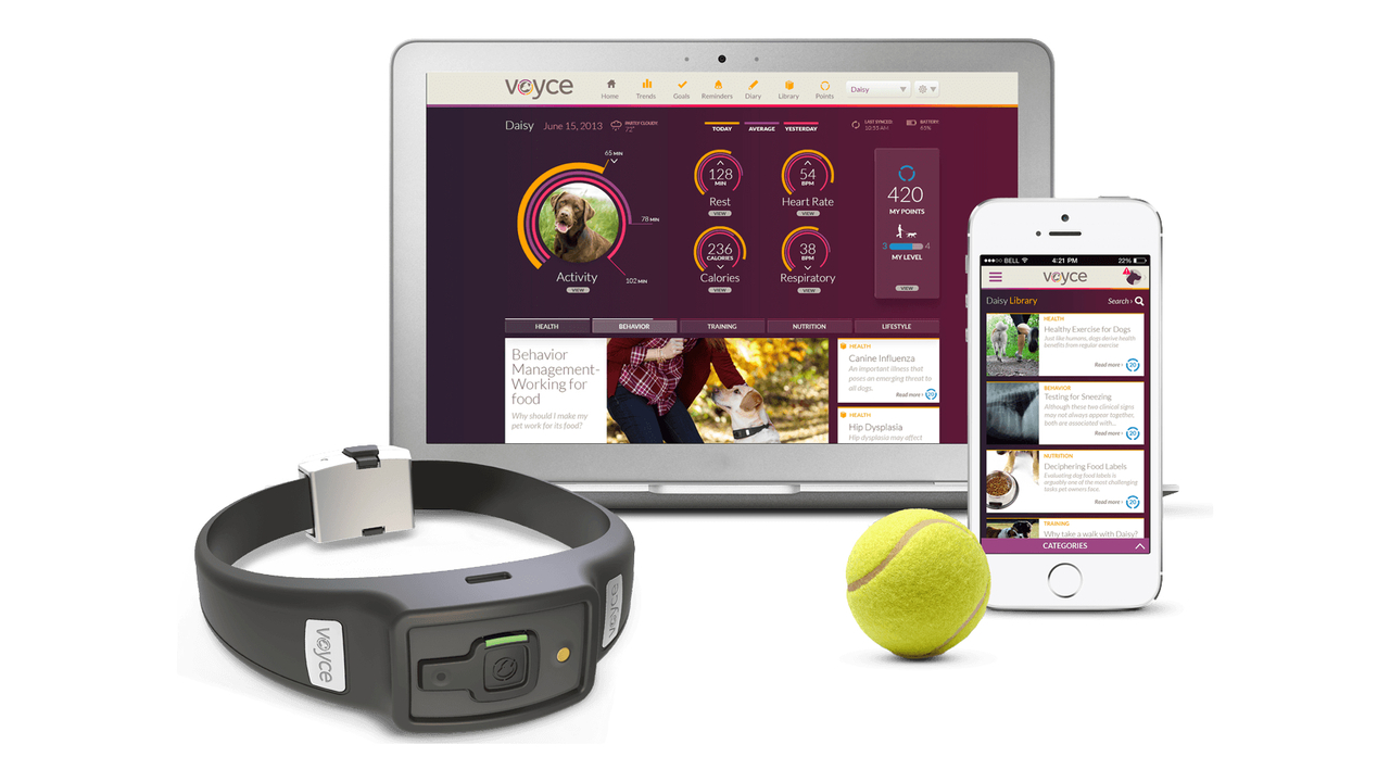 Voyce is a wearable technology and integrated health and wellness management tool for pets. It bridges the communication gap between dogs, their owners, and the people who love them. It's three-part approach of Discover, Learn, and Share gives unprecedented insight into your dog’s health and wellbeing, information and tools for you and your dog to grow together, and ways to share with your veterinarian and social networks.