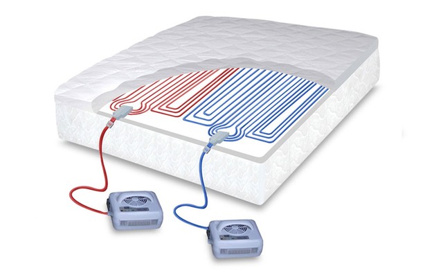 Your best night's sleep is a few degrees away! ChiliPad is a mattress pad with a cooling and heating temperature control system. It regulates the surface temperature of your mattress so that you sleep comfortably all night long. Designed to fit all standard and extra thick mattresses, this unique 150 thread count, poly cotton mattress pad uses soft medical grade silicone tubing to circulate regular water through the pad. The built in connection tube connects the pad to the control unit.