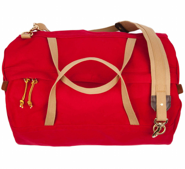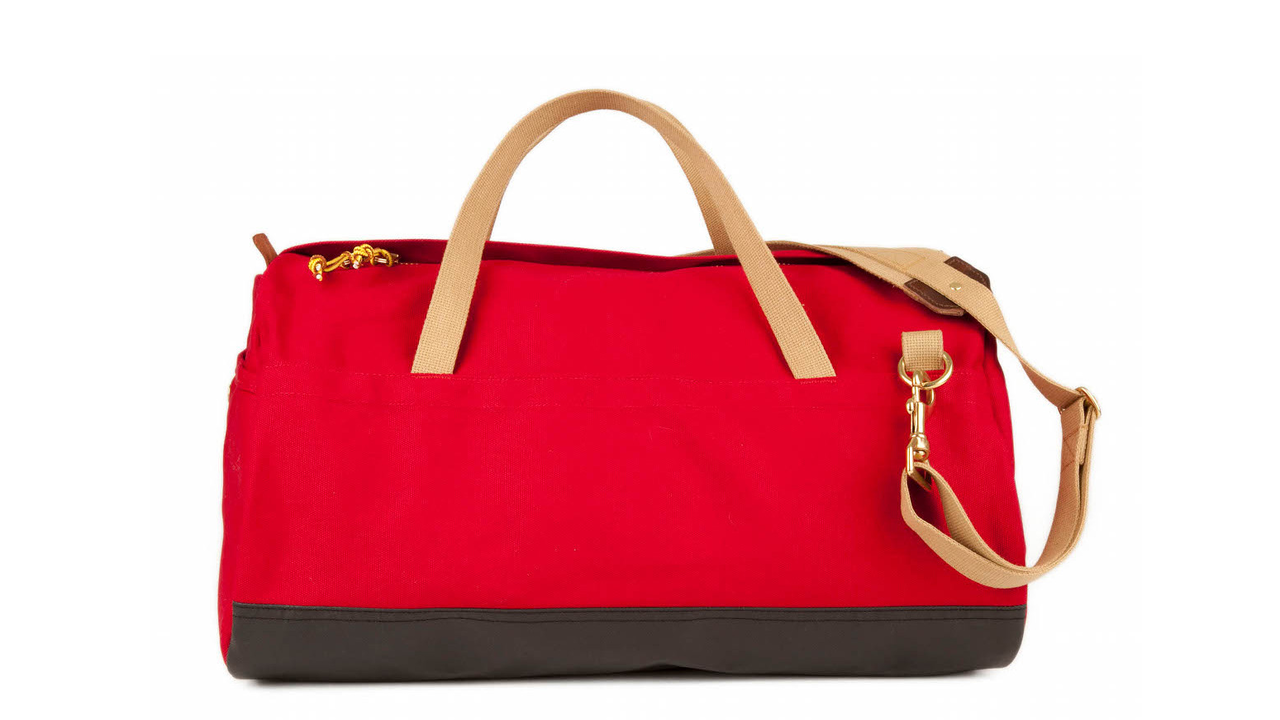 The Archival duffel is intended to be a sturdy, simple baggage for travel. It's perfectly sized for carrying on airplanes. It is in essence a compact tube with inside and outside pockets on the ends. The duffel's bottom is covered in a waterproof, super tough nylon truck tarp to put you at ease even when setting the bag down on grimy subway platforms or dusty roads. The main compartment is accessed through a heavy-duty #10 brass zipper with bootlace zipper pulls, covered by a weather-resistant storm flap. A stout, leather-trimmed 2" wide shoulder strap is comfortable and easily removed (strap hangs 20 to 24" from shoulder), and handles made in British military webbing are securely bar-tacked in place.