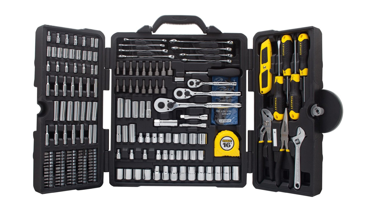 This tool set offers a complete range of SAE and metric-sized sockets and drive tools, combining the most popular tools for easy accessibility. STANLEY drive tools are forged from high-quality steel and finished in high-polish chrome. The ratchet handles are ergonomically designed and have an easy-to-use, thumb-operated reverse-switch mechanism. Sockets and extensions remain locked onto the drive until disengaged with an easy-to-reach, low-profile quick-release button.