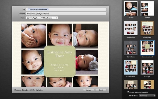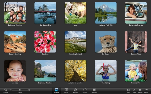 iPhoto lets you do more than you ever thought possible with your photos, with easy ways to find, sort, and rediscover your favorite shots. Simple but powerful editing tools let you turn good photos into magnificent ones. Share directly to Facebook, Flickr, Twitter, and Messages. iPhoto also works with iCloud, so the photos you take on your iOS devices automatically appear in iPhoto, and you can share selected photos and videos with family and friends using iCloud Photo Sharing. You can even create professional-quality photo books, calendars and letterpress cards quickly and easily.
