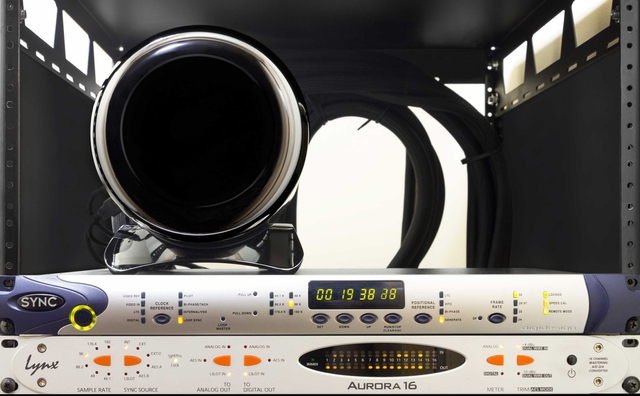 BookArc takes the height requirement of Mac Pro from 14 inches standing upright, including space for ventilation, down to 7.5 inches resting on its side atop the chrome stand. This reduced height means Mac Pro fits in a lot more locations, including inside pro gear racks, cabinets or on studio shelves. Set inside a racked studio cabinet, Mac Pro on a BookArc takes up 5 rack spaces — instead of the 8 spaces in the upright position.