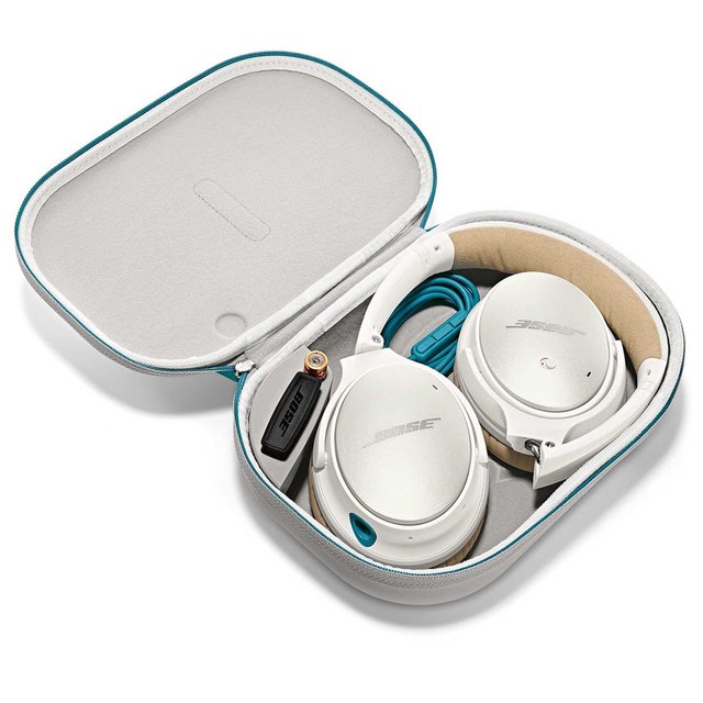 The QuietComfort 25 headphones have a new look and profile, steeped in the Bose brand -- authentic, modern, and minimal. Its mechanical design, including materials, angles, arc lengths and headband radii, was re-engineered to sit closer to the head. The headband design is proprietary, and its pad uses an engineered fabric found in high-end automotive applications. The ear cushions are made of protein leather, and the earcups feature a soft-touch TPE bumper and cast zinc pivot. Comfortable and light-yet secure, the QC25 headphones are built to last, and fold and fit in a carrying case that’s smaller than any in the industry.