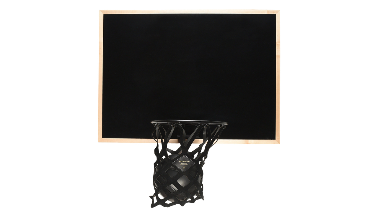 Transform your home or office with the killspencer Indoor Mini Basketball Kit. The Indoor Mini Basketball Kit ‘Special Edition’ has a 24-Karat ‘Conflict Free’ gold plated breakaway rim, mounted on a matte black maple backboard, featuring a black leather net with gold foil skirt. The ‘Classic Edition’ has a powder-coated black metal breakaway rim, mounted on a matte black and natural maple backboard, with a black leather killspencer stamped net. Both attach to a wall using a cleat system assembly. Install and secure one cleat to the wall, then lock in place the backboard to the bracket.