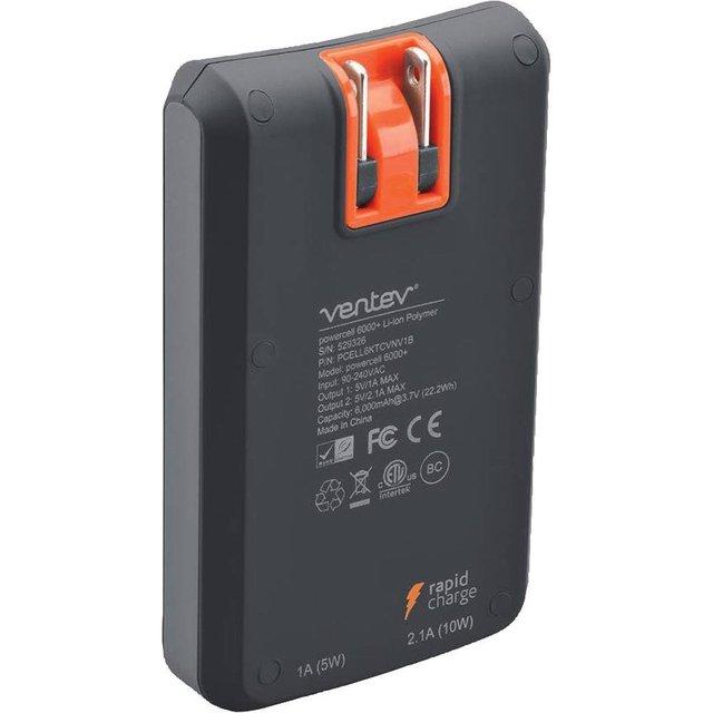 This combination wall charger and backup battery is the ideal travel charger. The Ventev powercell 6000+ is a dual output, 6000mAh portable charger which has integrated folding AC prongs. No need to carry a wall charger for your backup battery. Charge your phone and tablet while plugged into the wall or with the power stored in the onboard battery.