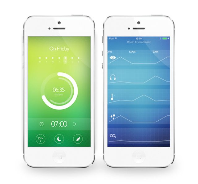 ● Tracked data > ambient brightness, ambient noise, night break, snooze, morning reflex, sleep quality, temperature, humidity, CO2 level, light and deep sleep, burnt calories.