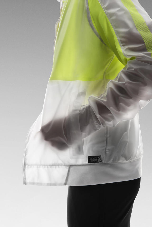 Nike Football obsessed every design detail, from the welded pockets and zip covers that prevent zippers from flapping to the iconic stripe extending from the shoulder to the elbow.