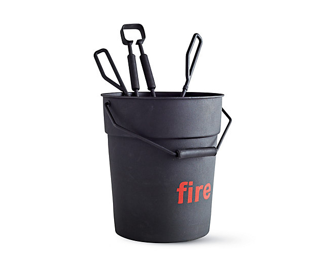 Levy’s Fire Tools (2007) are a modern reinterpretation of traditional fire tools constructed of sturdy lightweight aluminum with rubber handles for a firm grip. Store the tools in the included aluminum bucket, which also has room for a few extra logs, kindling, lighters and matches. In cheeky fashion, Levy has emblazoned “fire” on the bucket to remind users what the tools are for, lest they forget.
