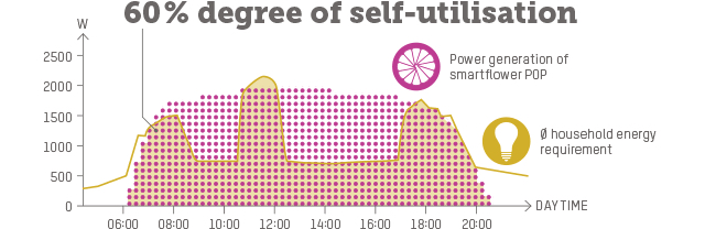 Smartflower POP achieves a degree of self-utilisation of around 60% – a significant improvement over a comparable rooftop unit, which averages just around 30%. Now that is what we call smart!