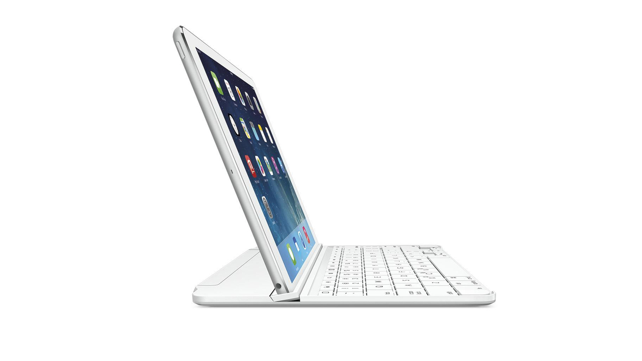 How do you make your iPad Air even more perfect? Add its perfect match—an ultrathin aluminum cover with built-in Bluetooth keyboard. A new smart hinge lets you tilt your iPad Air like a laptop screen to get your perfect typing angle. Well-spaced keys and iOS shortcuts give you an incredibly fast, fluid and comfortable typing experience with the reassuring “click” of real keys.